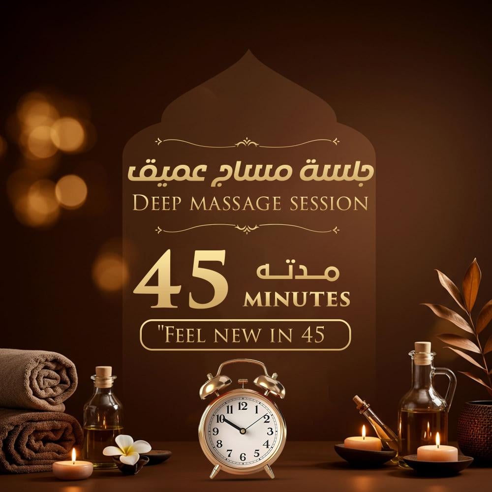 45 دقيقة مساج 99 ريال و10دقيقة حمام بخار مجانا