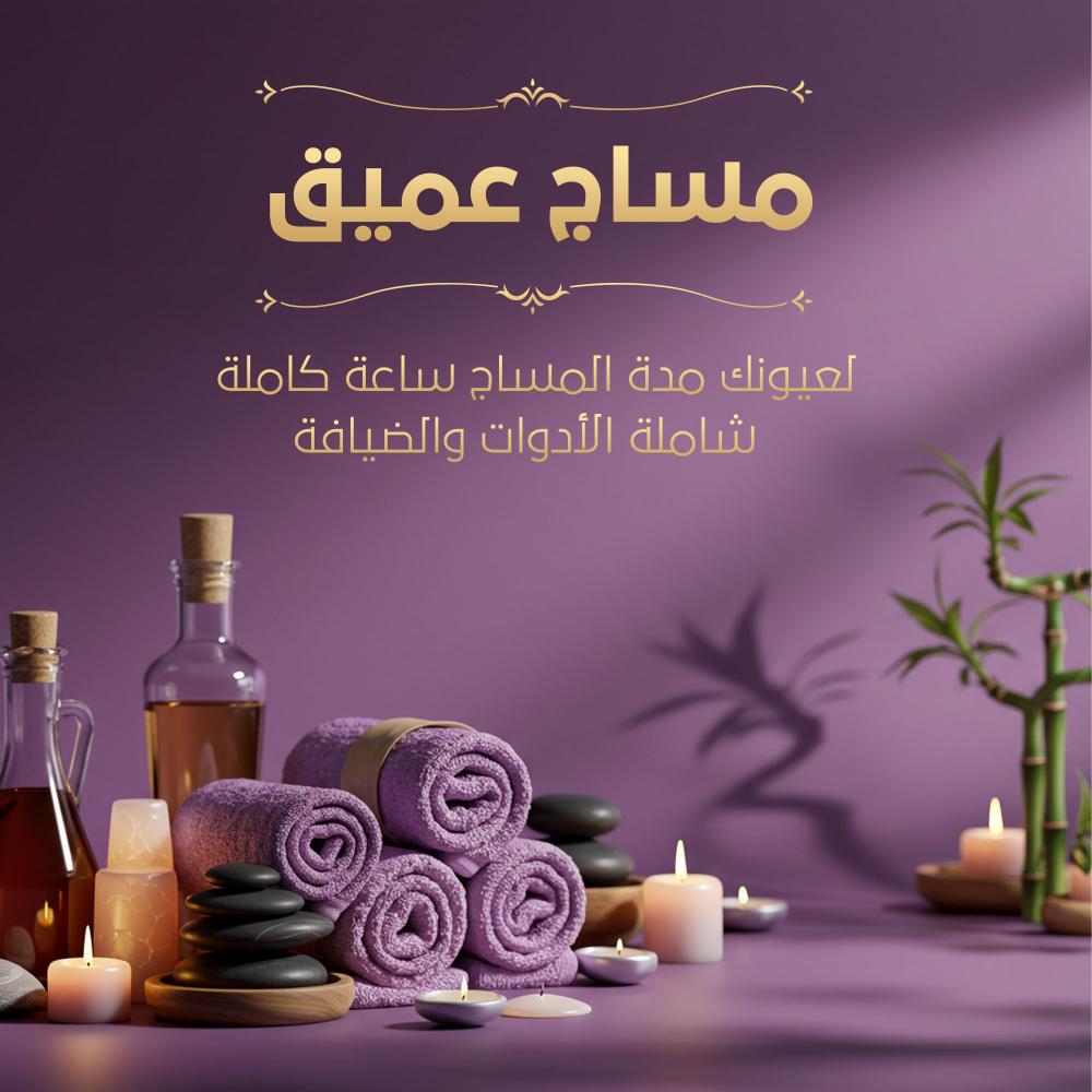 ولعيونك مدة المساج ساعة كاملة شاملة الأدوات والضيافة 💜💫